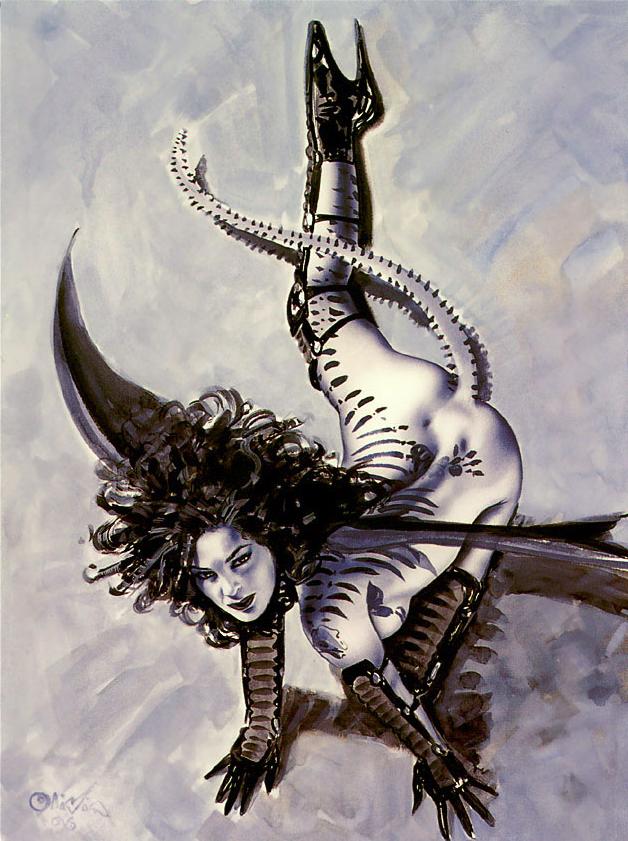 Olivia DeBerardinis is a famous artist who specializes in pinup art. I only like those of her works that are fantasy themed (well, mostly) and that's all this page will ever hold, but most of her artwork is erotic and will almost definately offend some people, so if you don't like that sort of thing, Go HOME!
